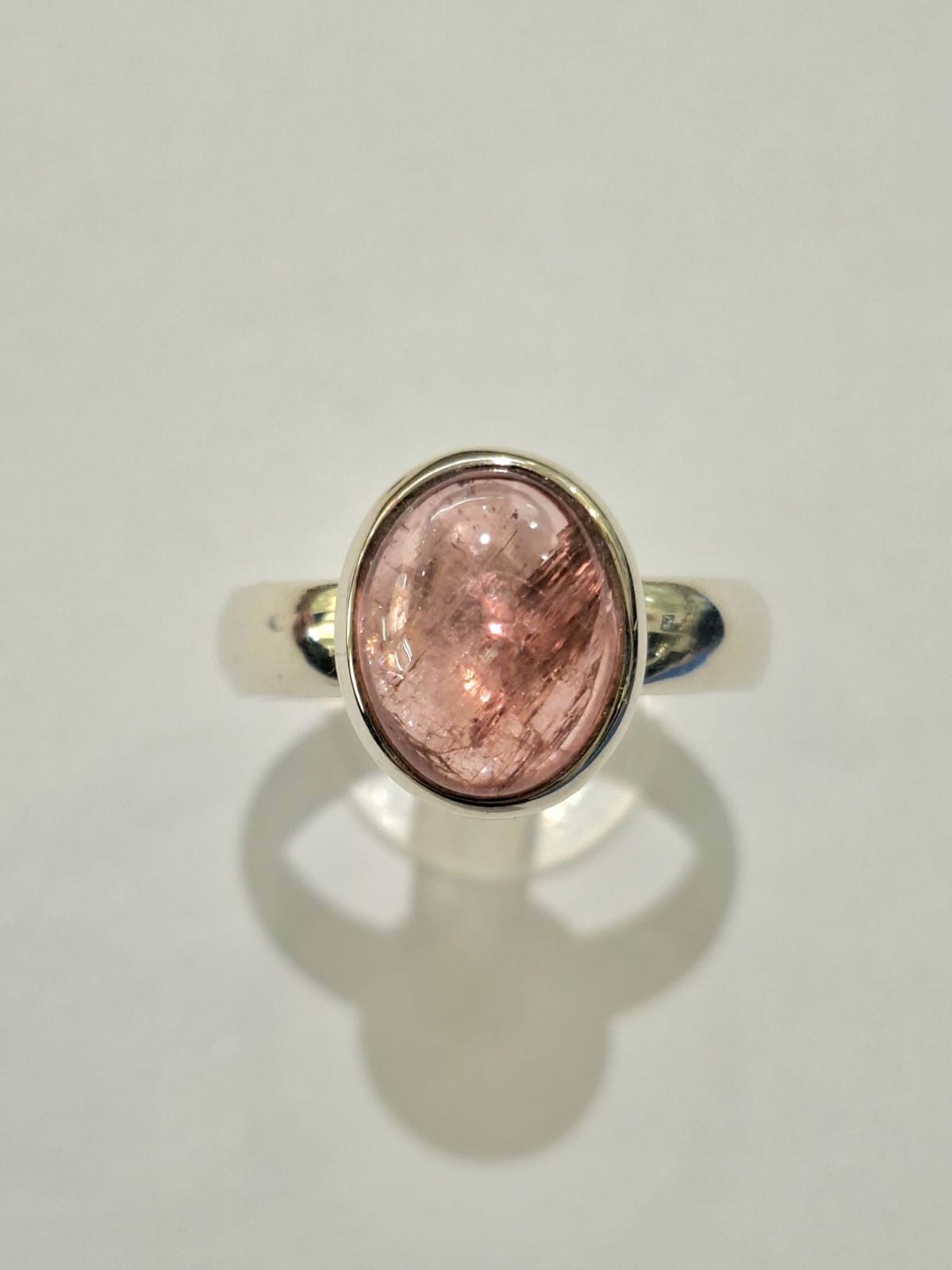 Anello in argento 925 con cabochon in tormalina rosa di elevata qualità con luce brillante accattivante