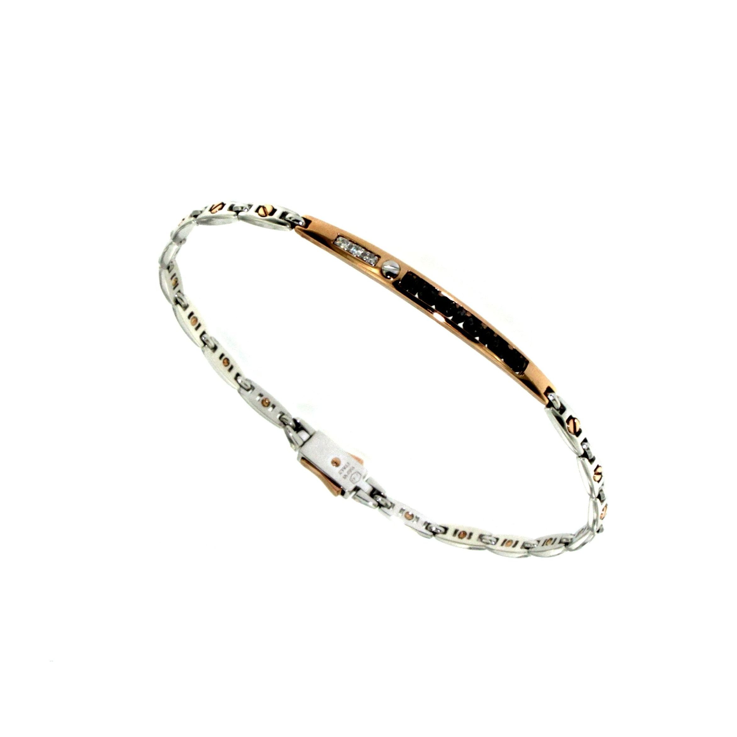 Bracciale in oro bianco e rosa con diamanti bianchi e neri.