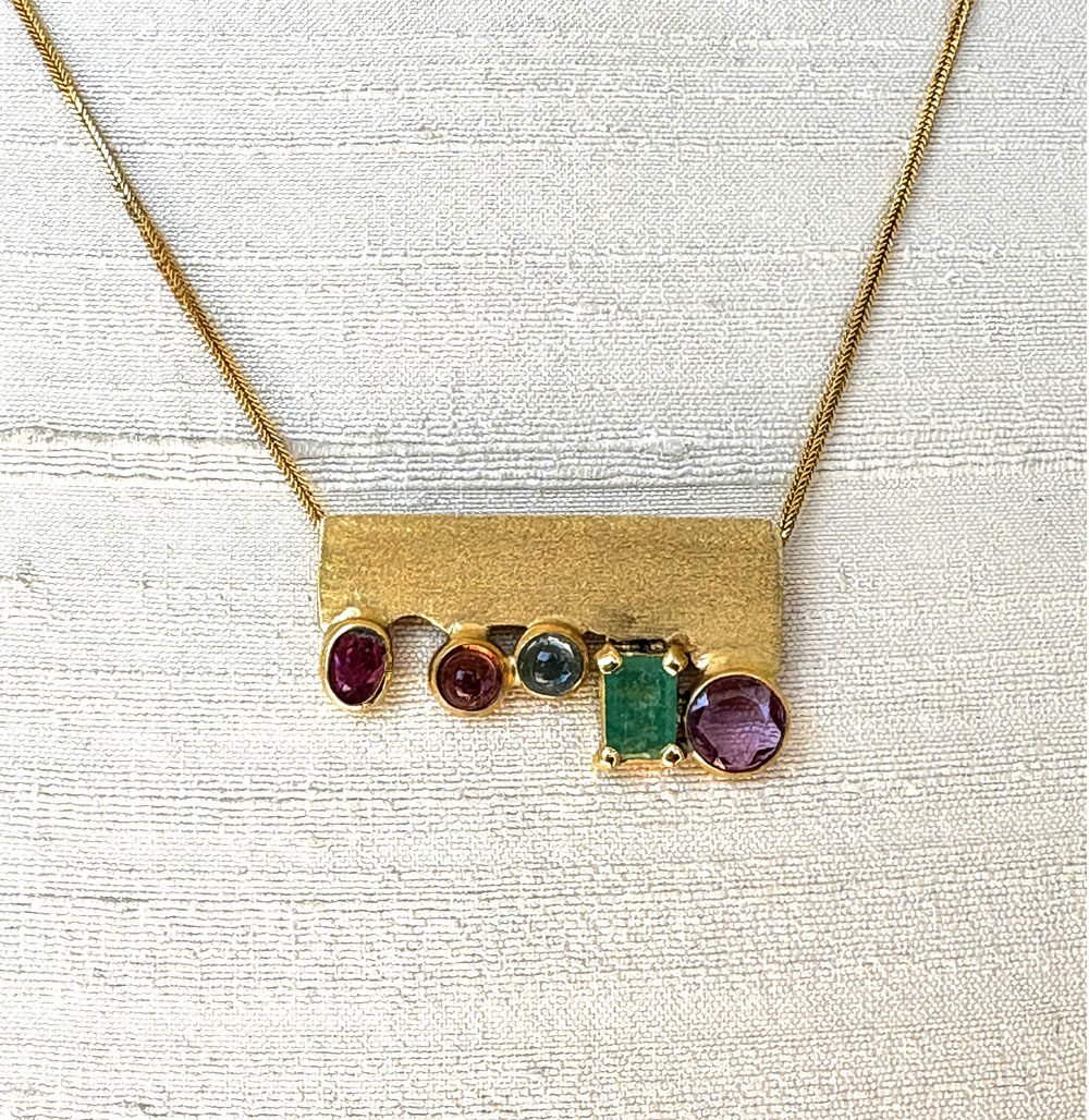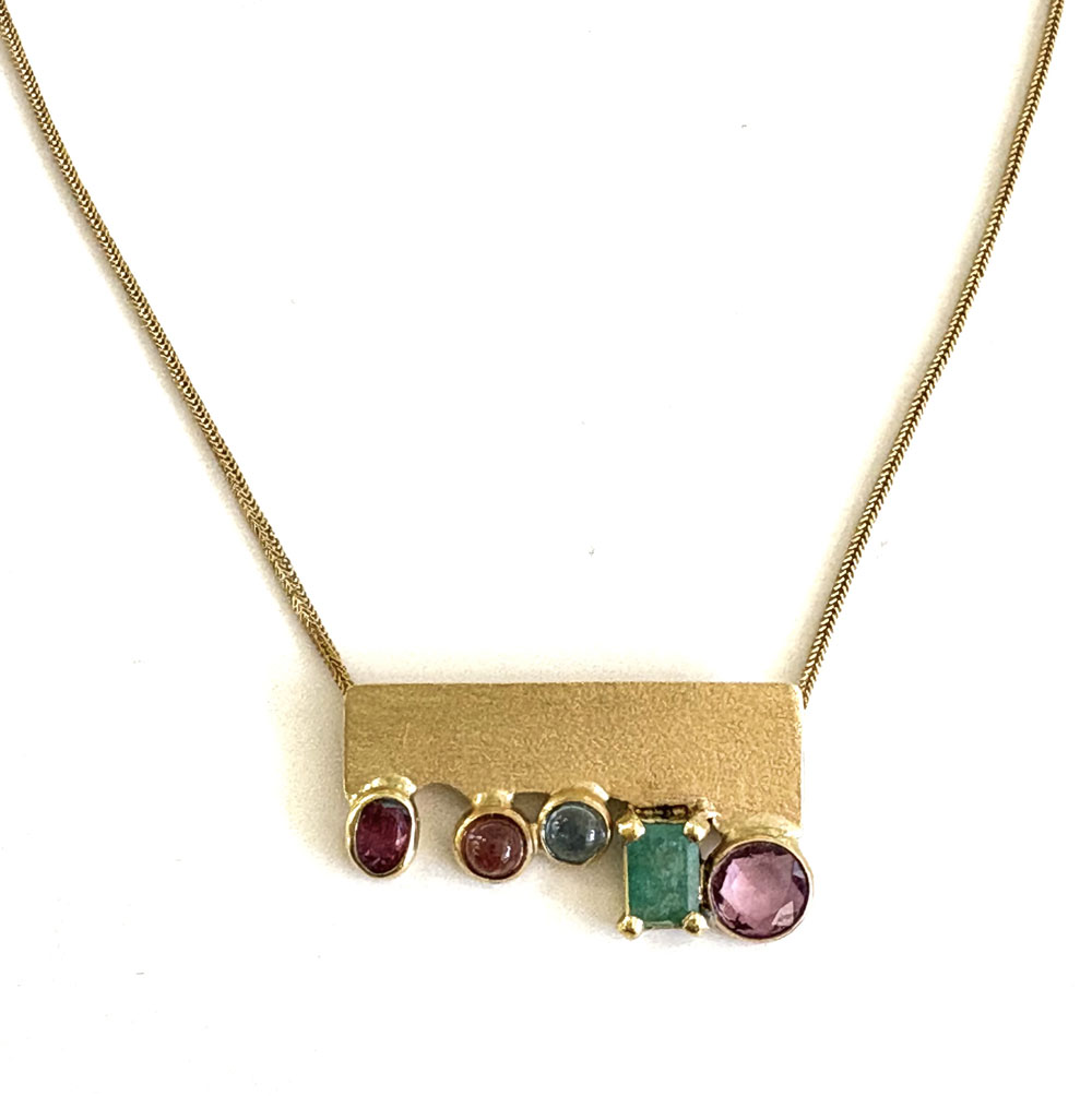 Catenina con ciondolo satinato e pietre preziose.