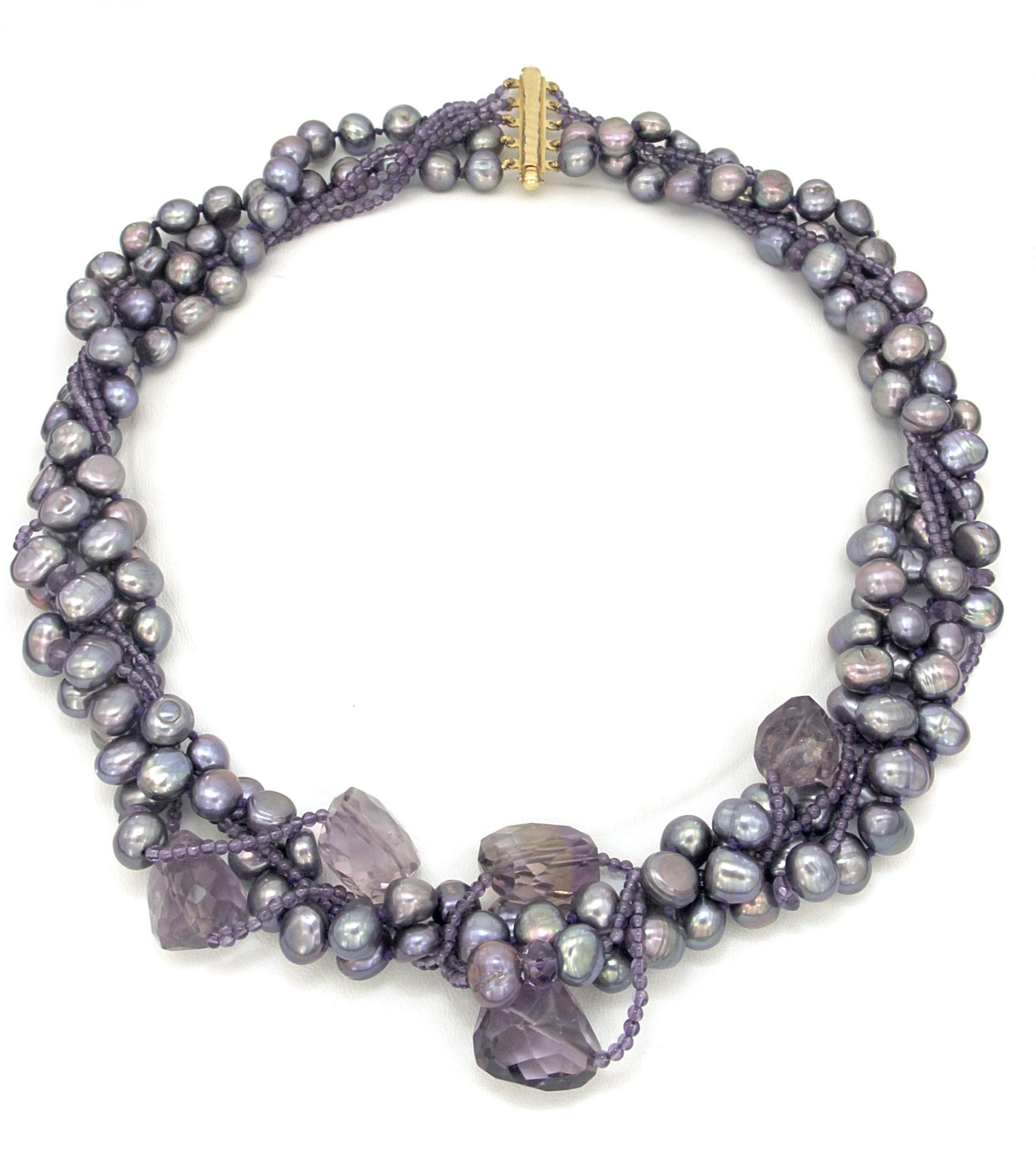 Perle Grigie Coltivate di Acqua Dolce, Ametista Naturale