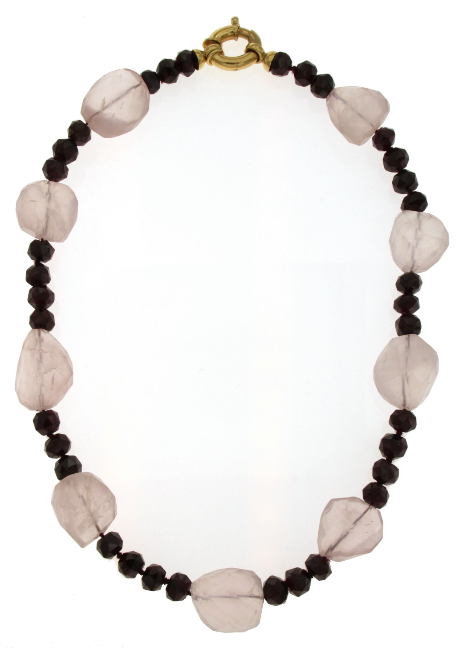 Collana in quarzo rosa e granato taglio antico con chiusura in oro