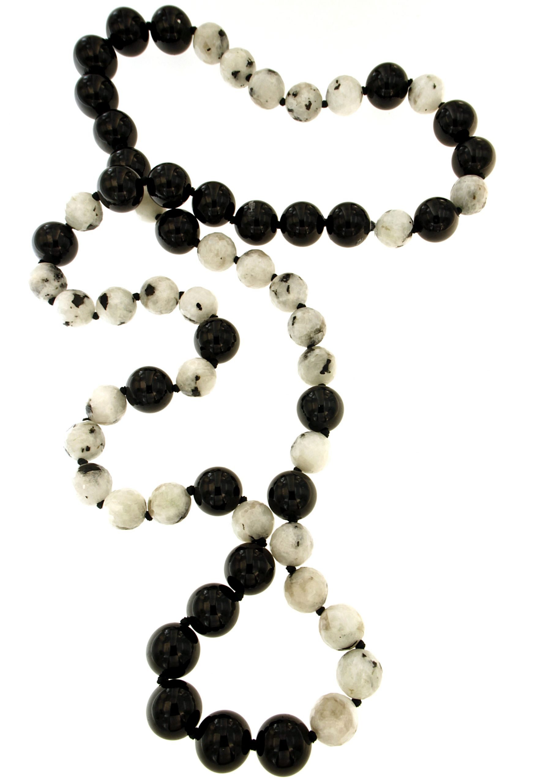 Collana realizzata con boules di giaietto nero e labradorite bianco e nero.