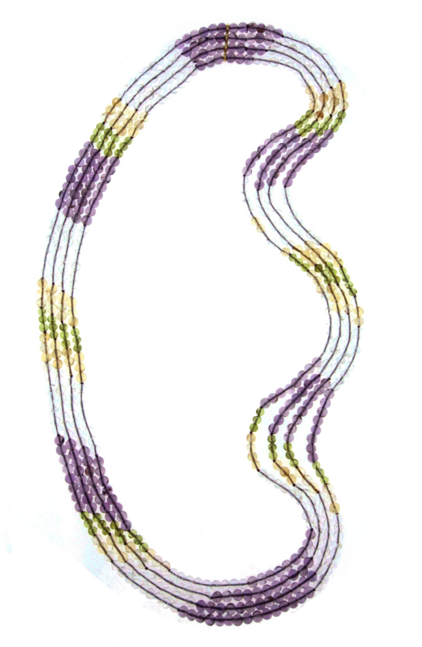 Collana multi filo di ametista, peridoto, quarzo ialino e quarzo citrino naturali