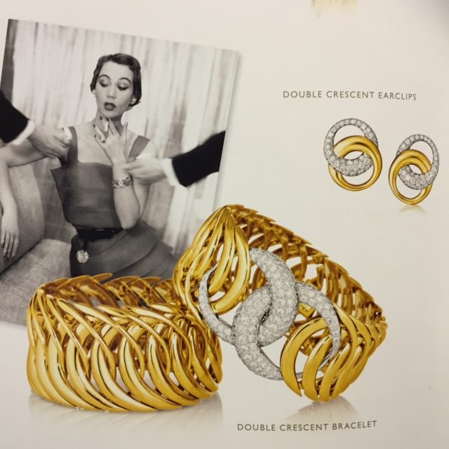 Il primo gioiello che vedo e ammiro è il “double crescent bracelet” con quella che è una geometria intrigante e perfetta di cerchi.